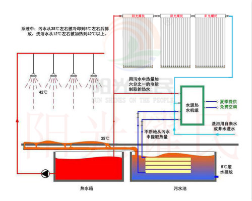 《洗浴排水熱能回收系統(tǒng)》是一項采用太陽能+熱泵,回收洗浴后的廢水中熱能的技術。_高溫洗浴熱泵回收低溫余熱,利用這一新的技術代替?zhèn)鹘y(tǒng)加熱方法,能夠減少燃煤對大氣的污染,節(jié)約大量不可_能源。